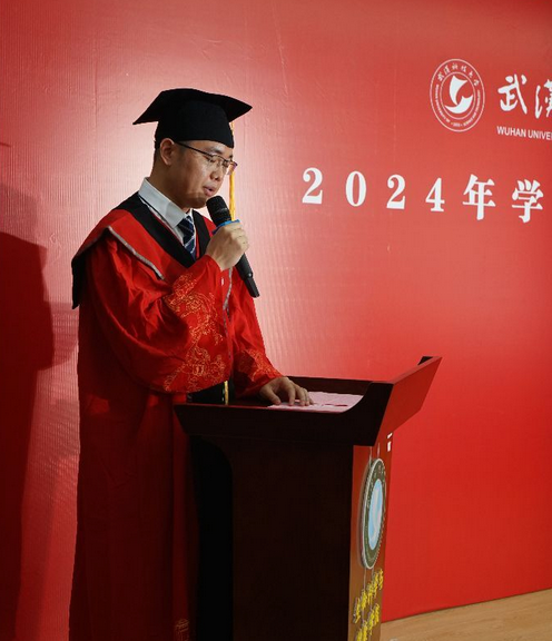 刘剑锋进行毕业典礼致辞,他在讲话中回顾了毕业生们大学的学习生活,对 2024 届毕业生提出了希望和祝愿,也道出了生科院全体老师对毕业生的心声和美好祝福。刘剑锋勉励毕业生们时刻保持学习的态度,一直保持自信的姿态,建立起专业自信,要自信自己的本科专业是前沿的、基础的、有发展潜力的。随后,刘剑锋、王婧、顾潮江、周俊为研究生授学位;姚凯、廖兴华为本科毕业生授学位。