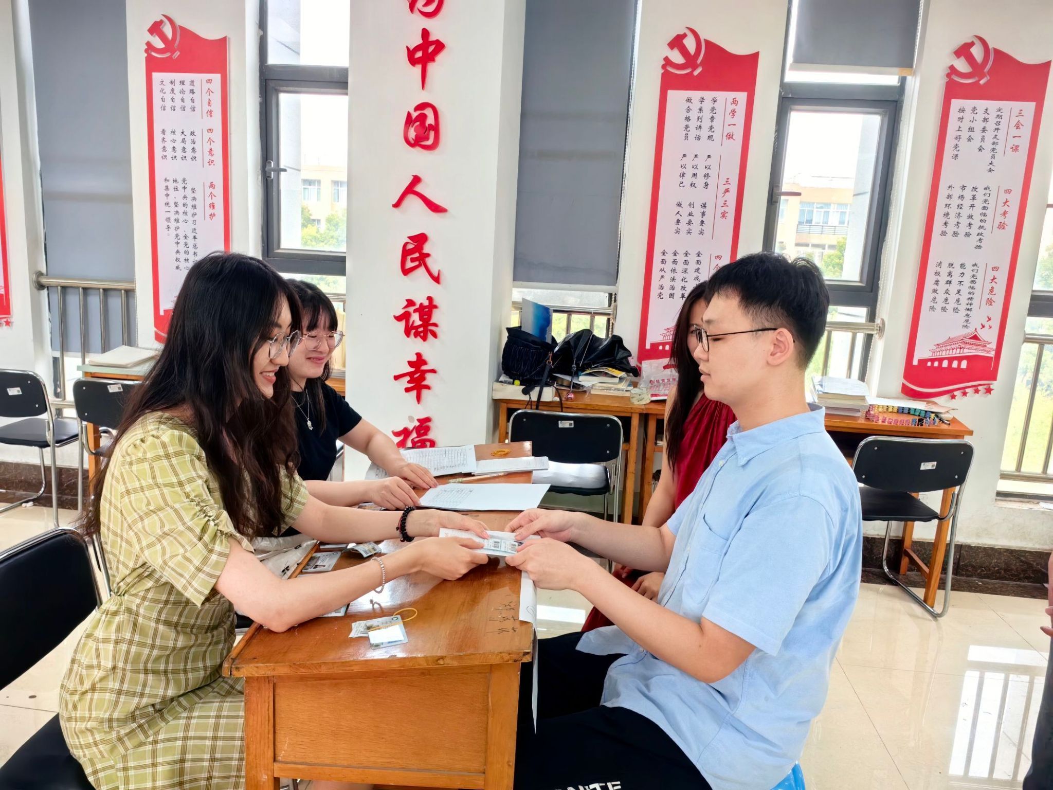 迎新志愿者在接待点准备就绪,随着新生的到来,迎新志愿者们按照网络注册报到、核验新生提供的材料、发放物资材料三个版块的顺序帮助新生快速、完整地完成报到流程。365官网党委副书记兼行政副院长孟佳也来到迎新现场,确保新生报到工作高效有序的进行。2024级研究生陈世敏感叹道:“报到流程非常高效、顺畅,我也很喜欢生科院的环境还有氛围!”
