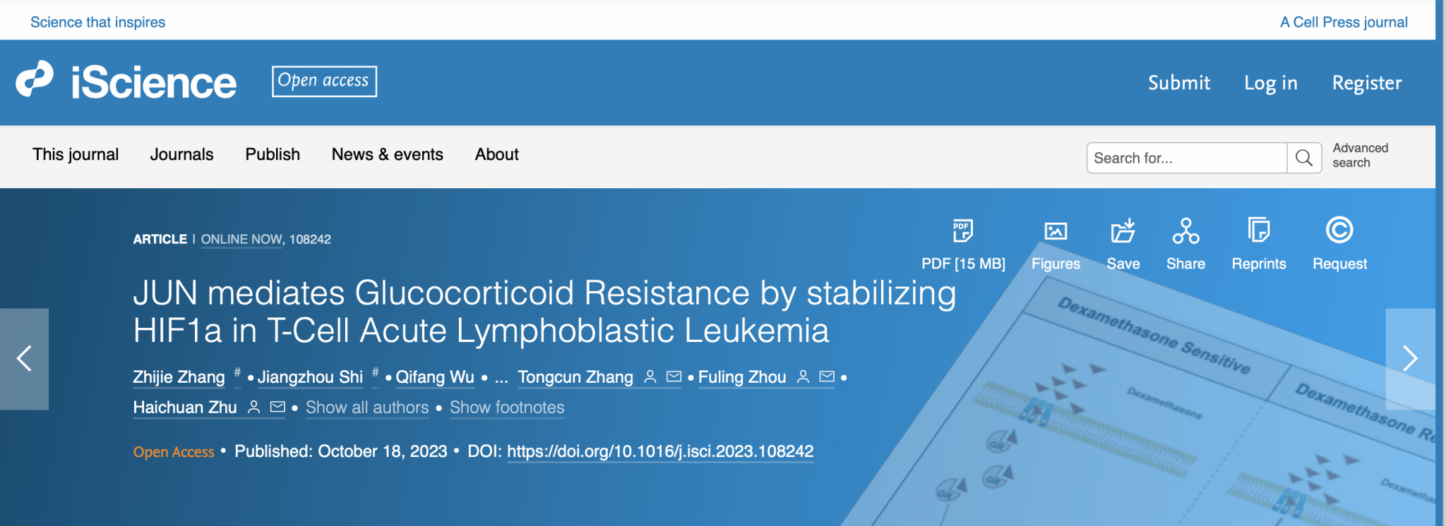 武科大网讯 10月18日,365官网英国上市公司官网365祝海川、张同存课题组联合武汉大学中南医院血液科周芙玲教授课题组合作在Cell综合性子刊iScience上发表题为“JUN mediates Glucocorticoid Resistance by stabilizing HIF1A in T-Cell Acute Lymphoblastic Leukemia”的研究性论文。